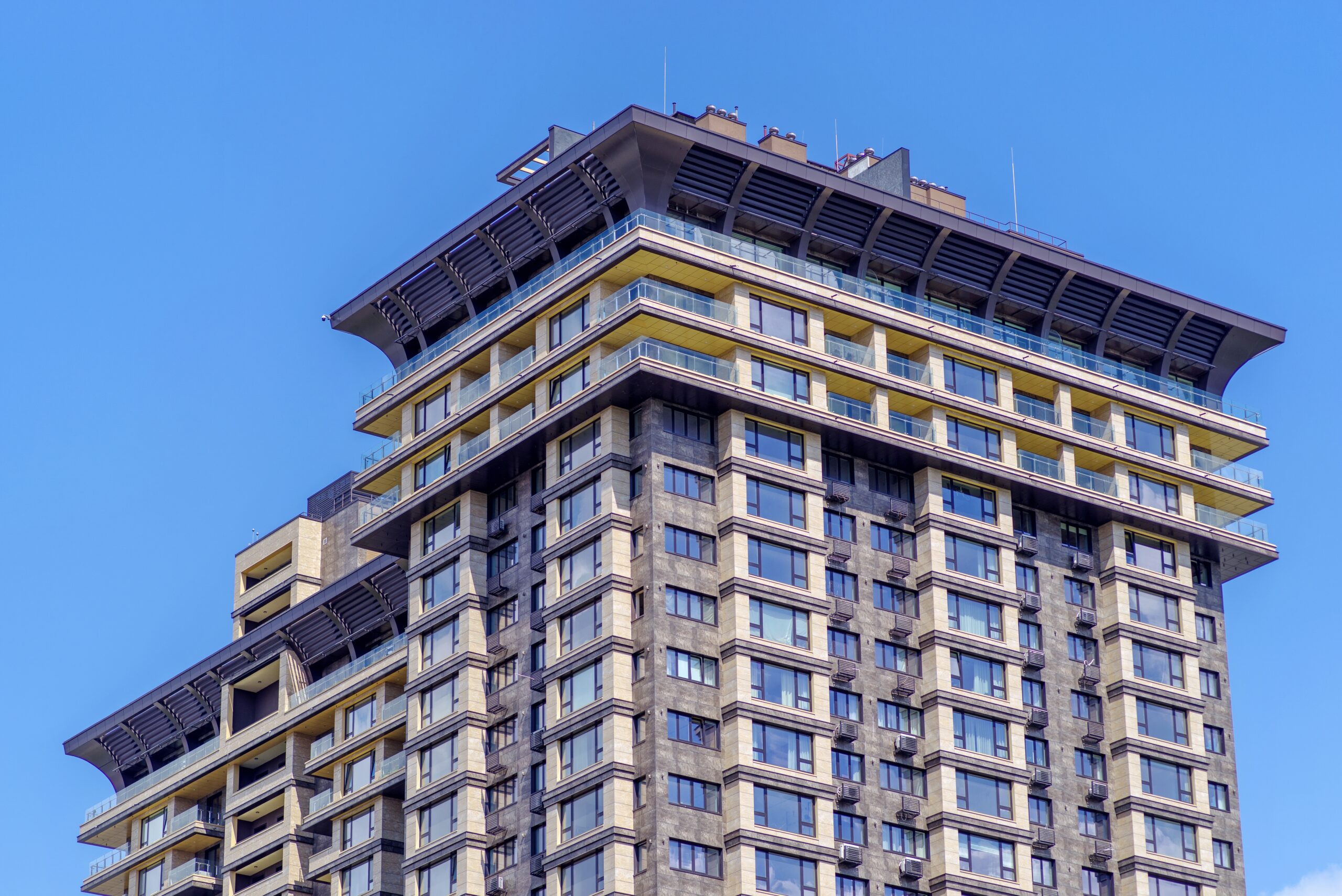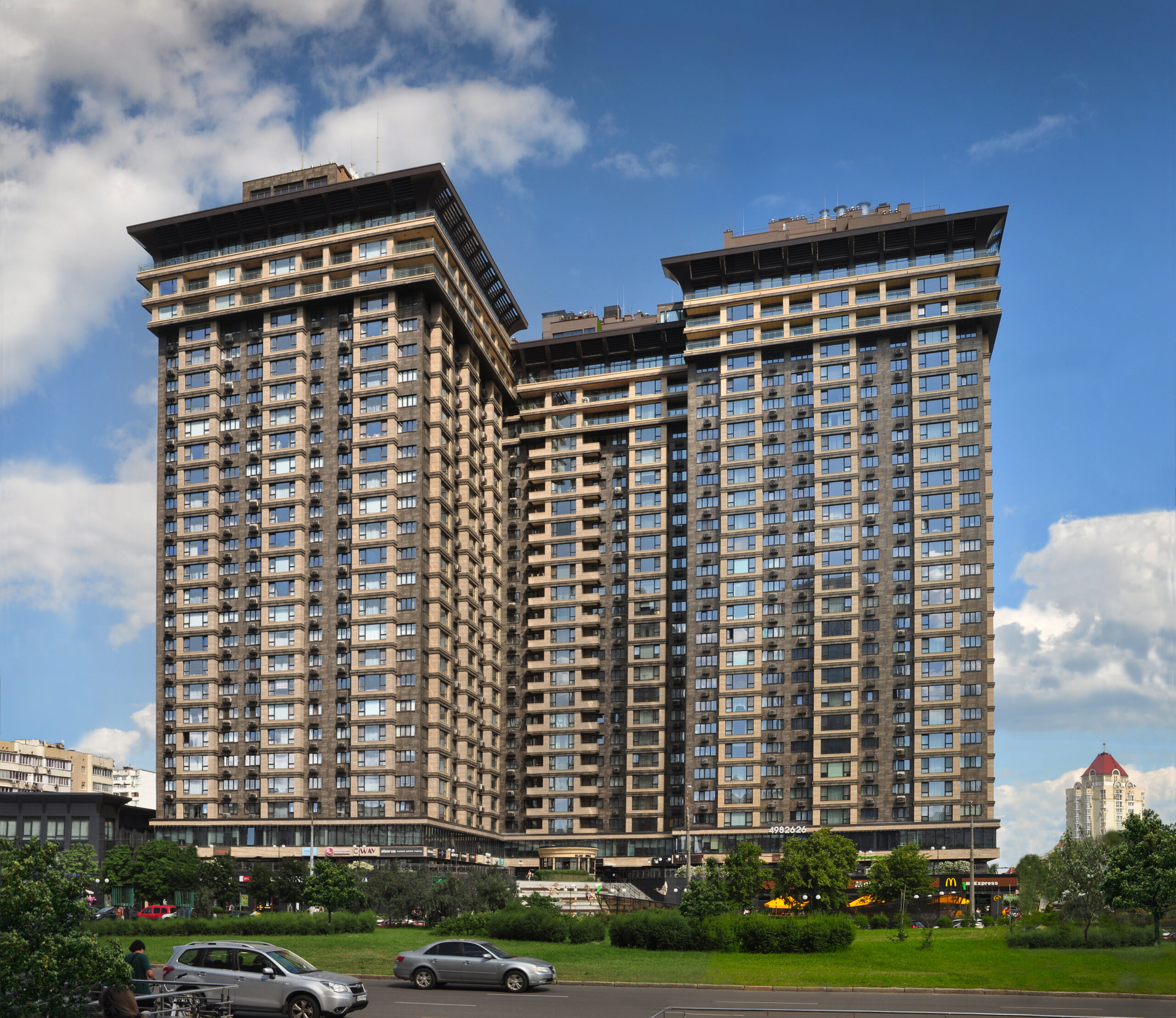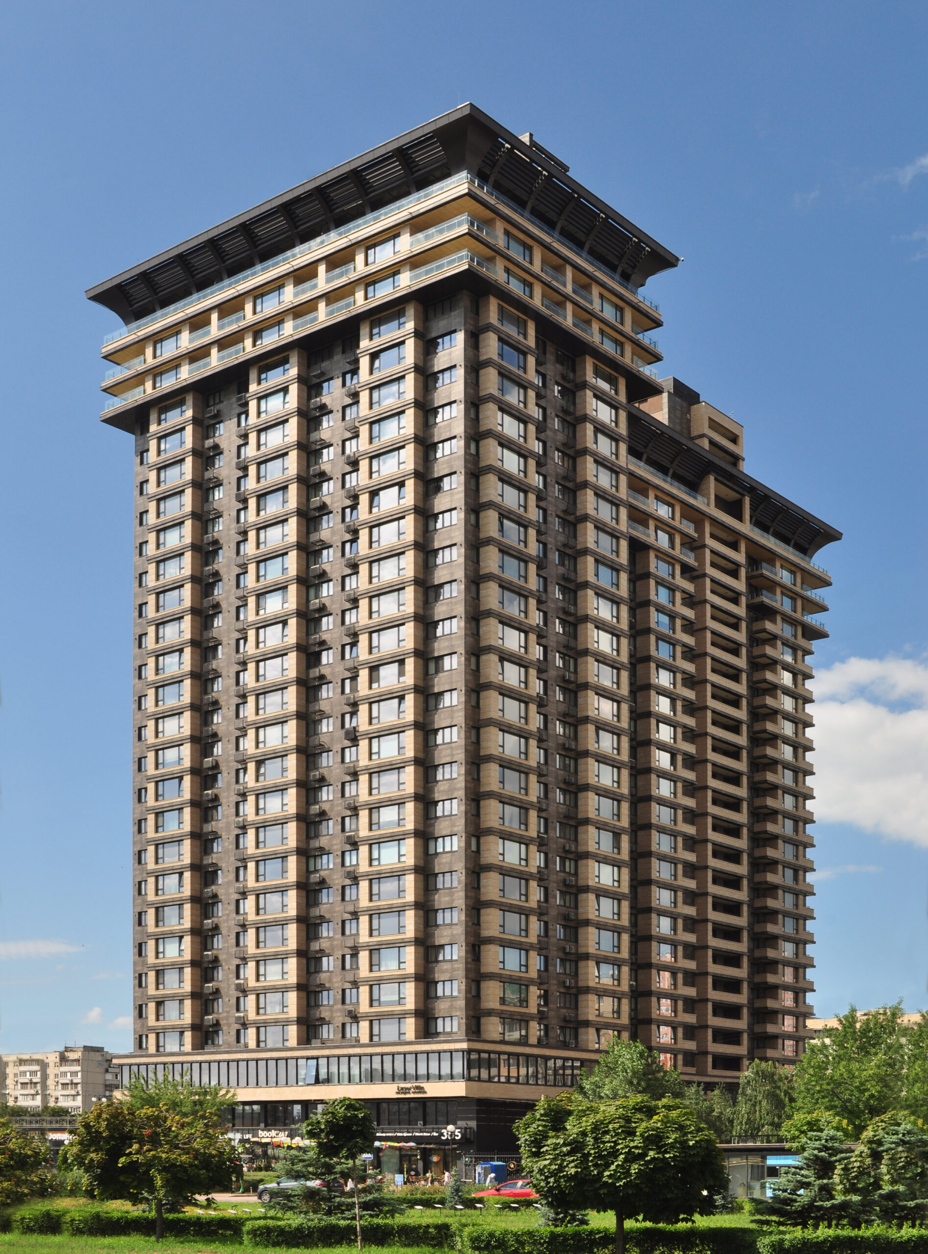Будівля спроектована за стандартами 5-зіркового готелю, з акцентом на високий рівень комфорту та розкоші для мешканців. Темні фасади підкреслюють її стиль і елегантність, додаючи відчуття ексклюзивності та статусу. Кожен елемент архітектури, від дизайну зовнішнього вигляду до деталей інтер’єру, створює атмосферу вишуканості, яка відповідає рівню найкращих готелів світу.