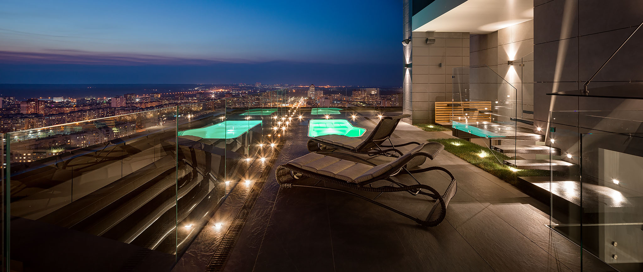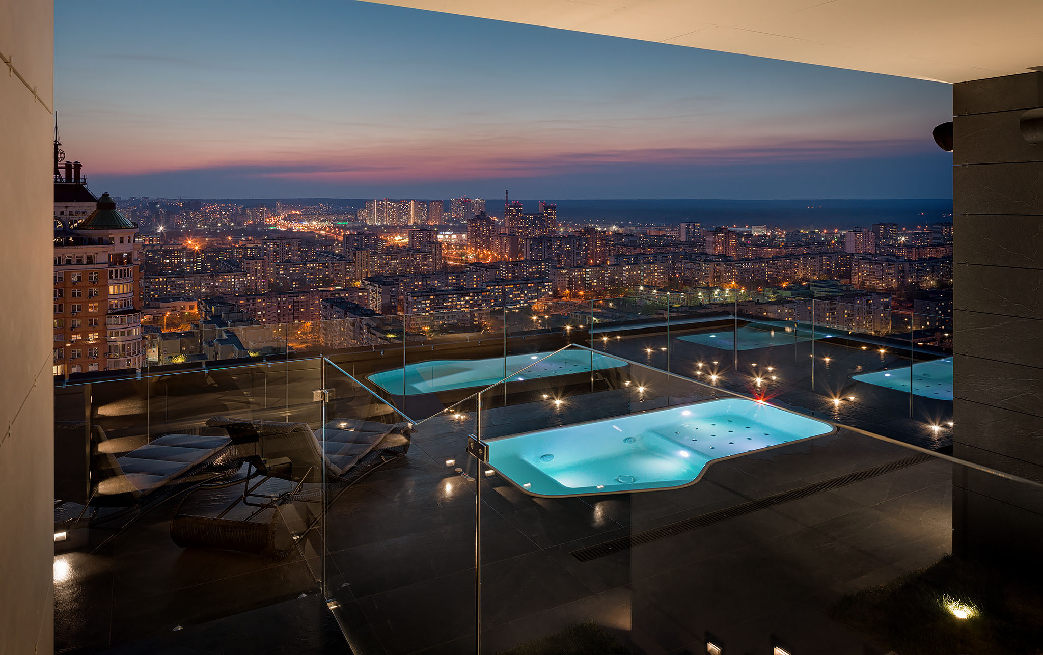 Особливістю цього пентхаусу є тераса з басейном, яка відкриває вражаючий вид на місто. Це створює унікальну можливість відпочинку просто неба, додаючи пентхаусу нотки розкоші та ексклюзивності. Басейн на терасі стає логічним продовженням інтер’єру, забезпечуючи ідеальний простір для релаксації та насолоди міськими краєвидами.