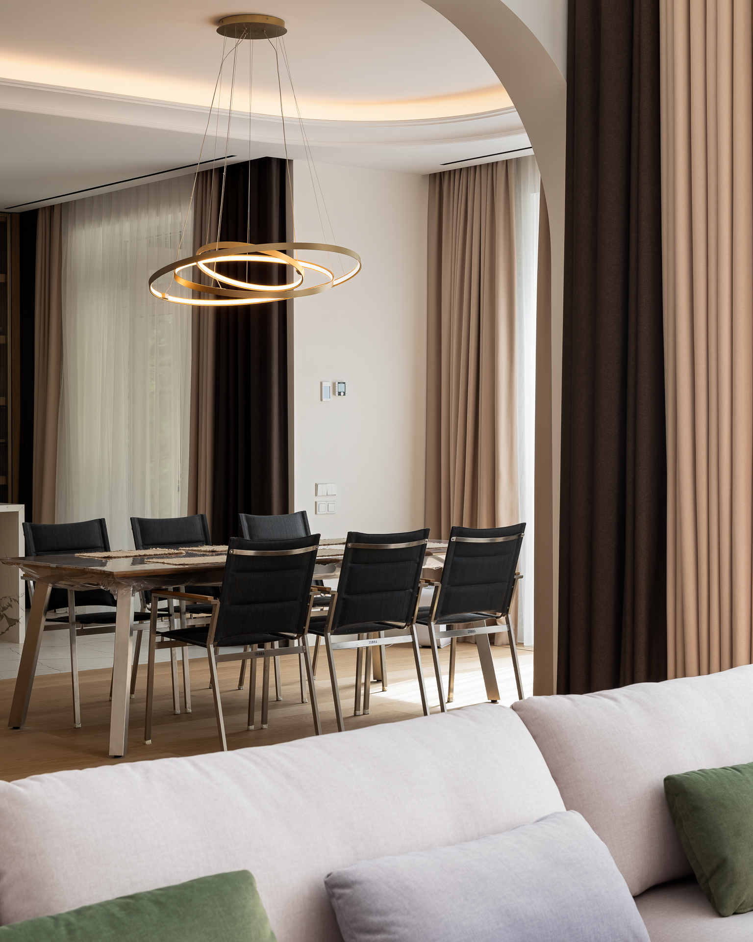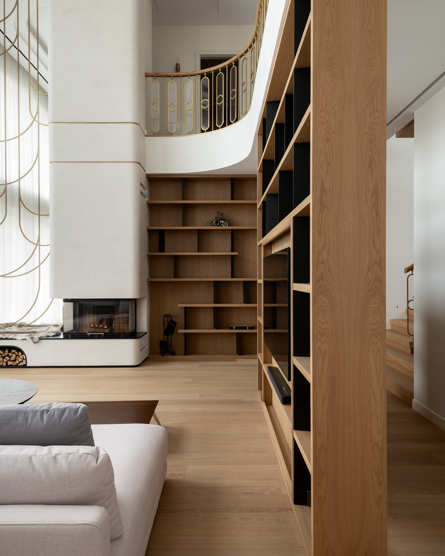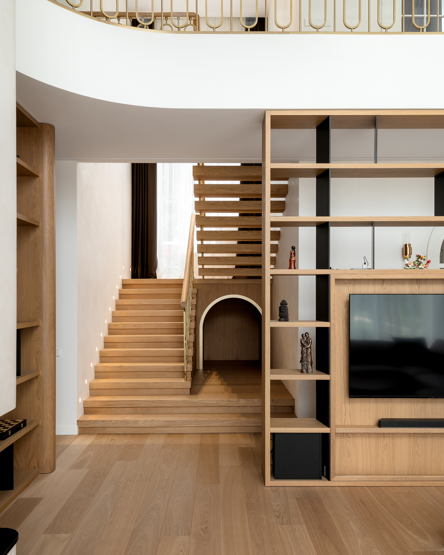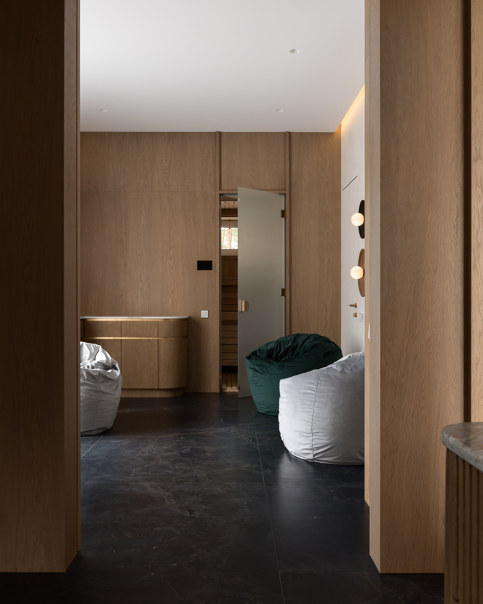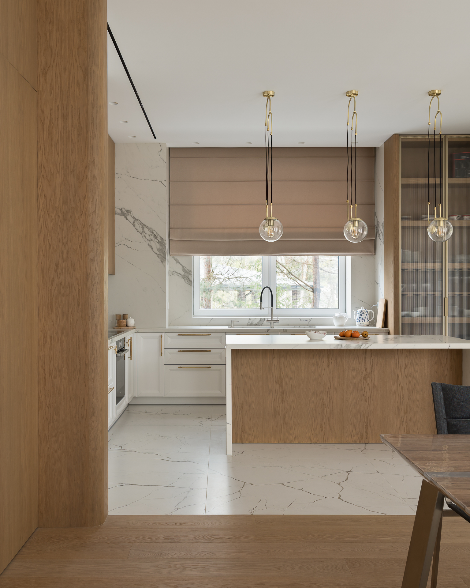 Інтер’єр втілює баланс між сучасною простотою та елегантністю, використовуючи натуральні матеріали та приглушені відтінки для створення гармонійної атмосфери, де кожен елемент створює вишуканість і комфорт.