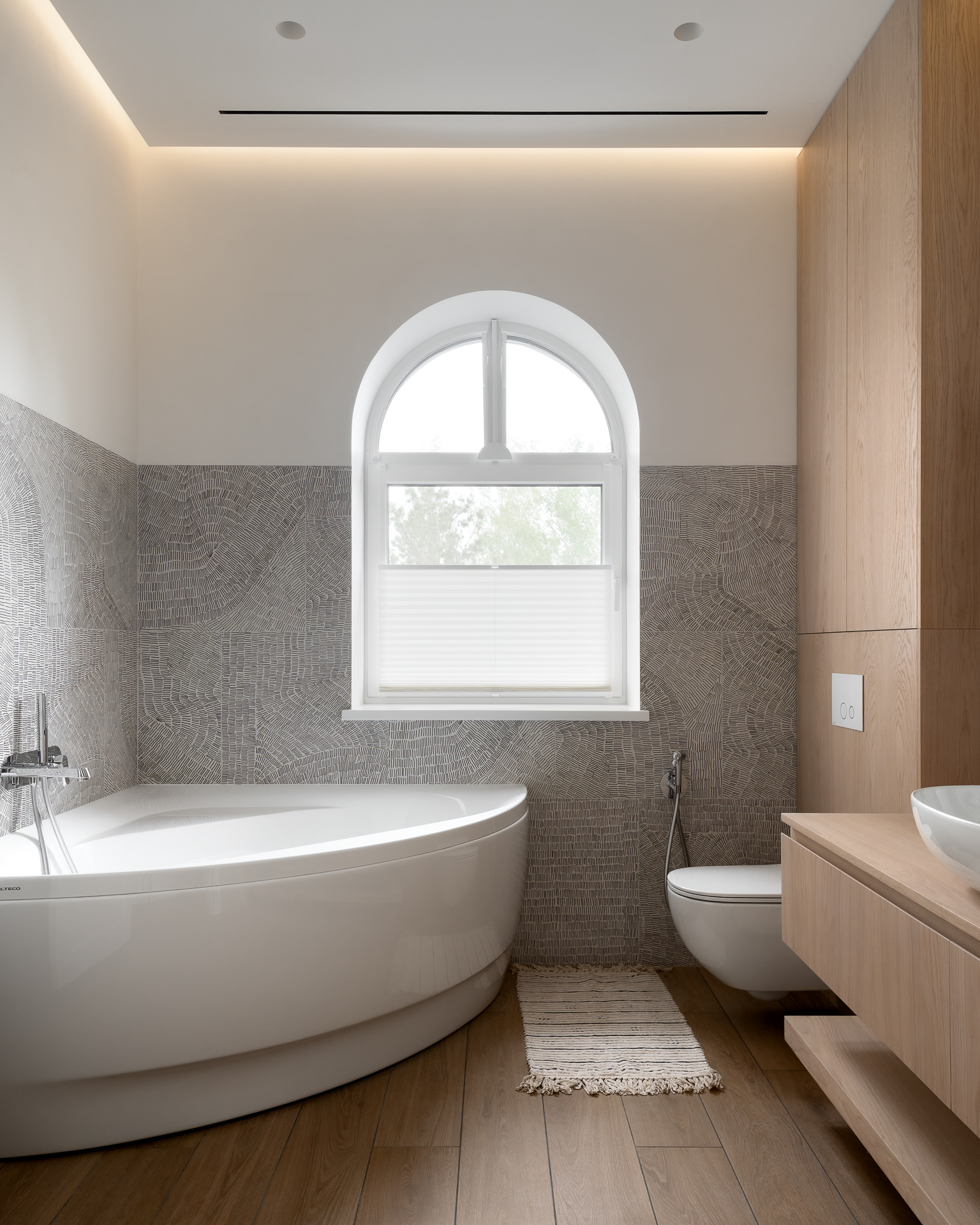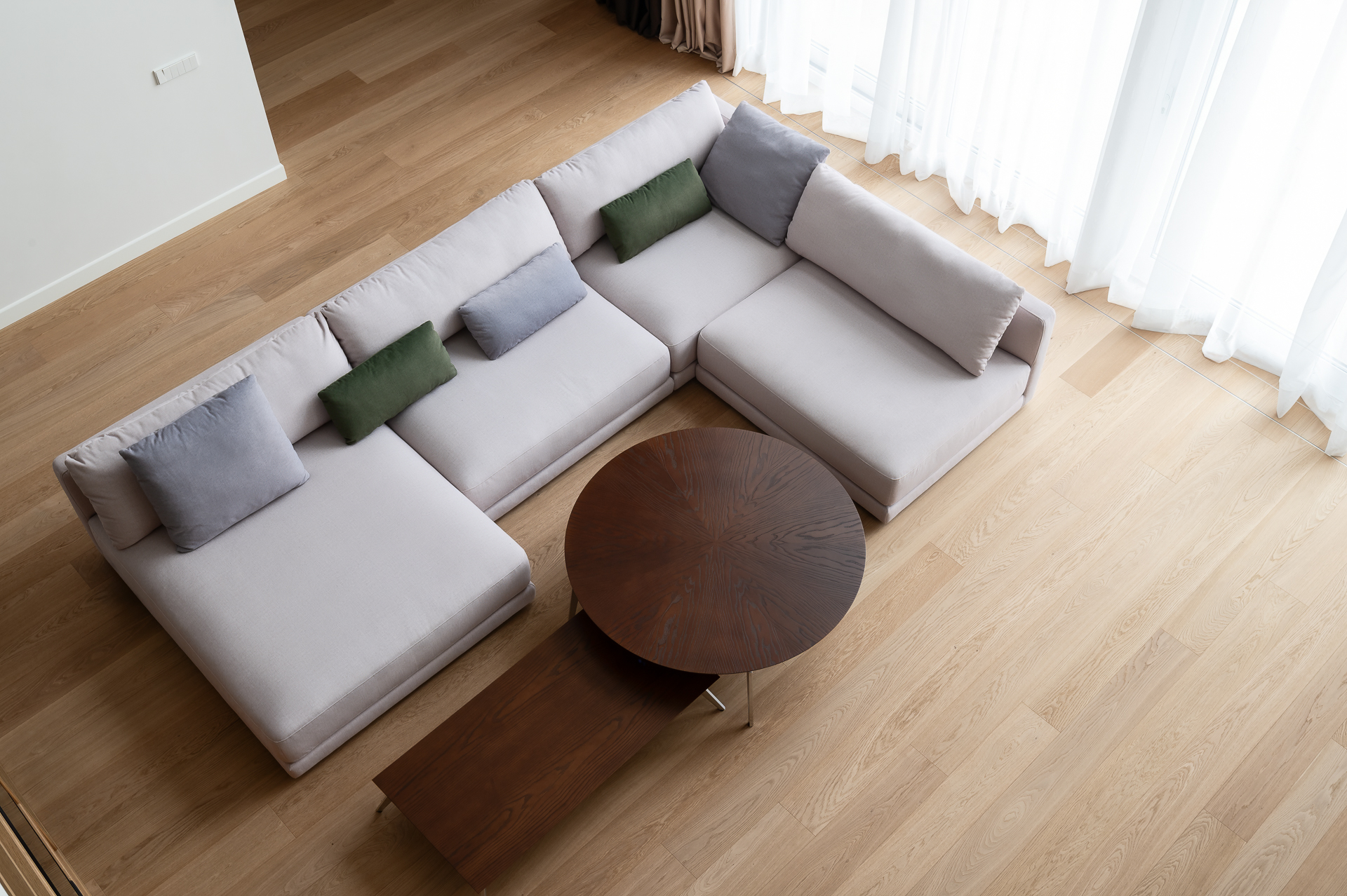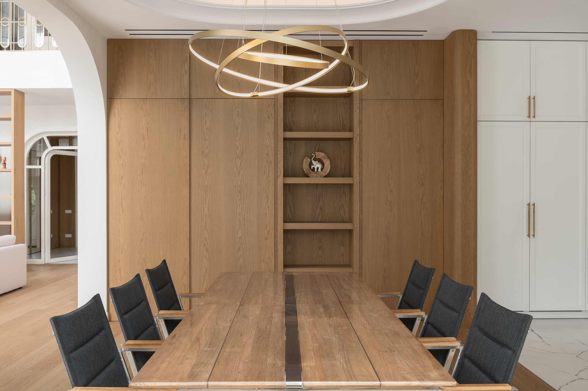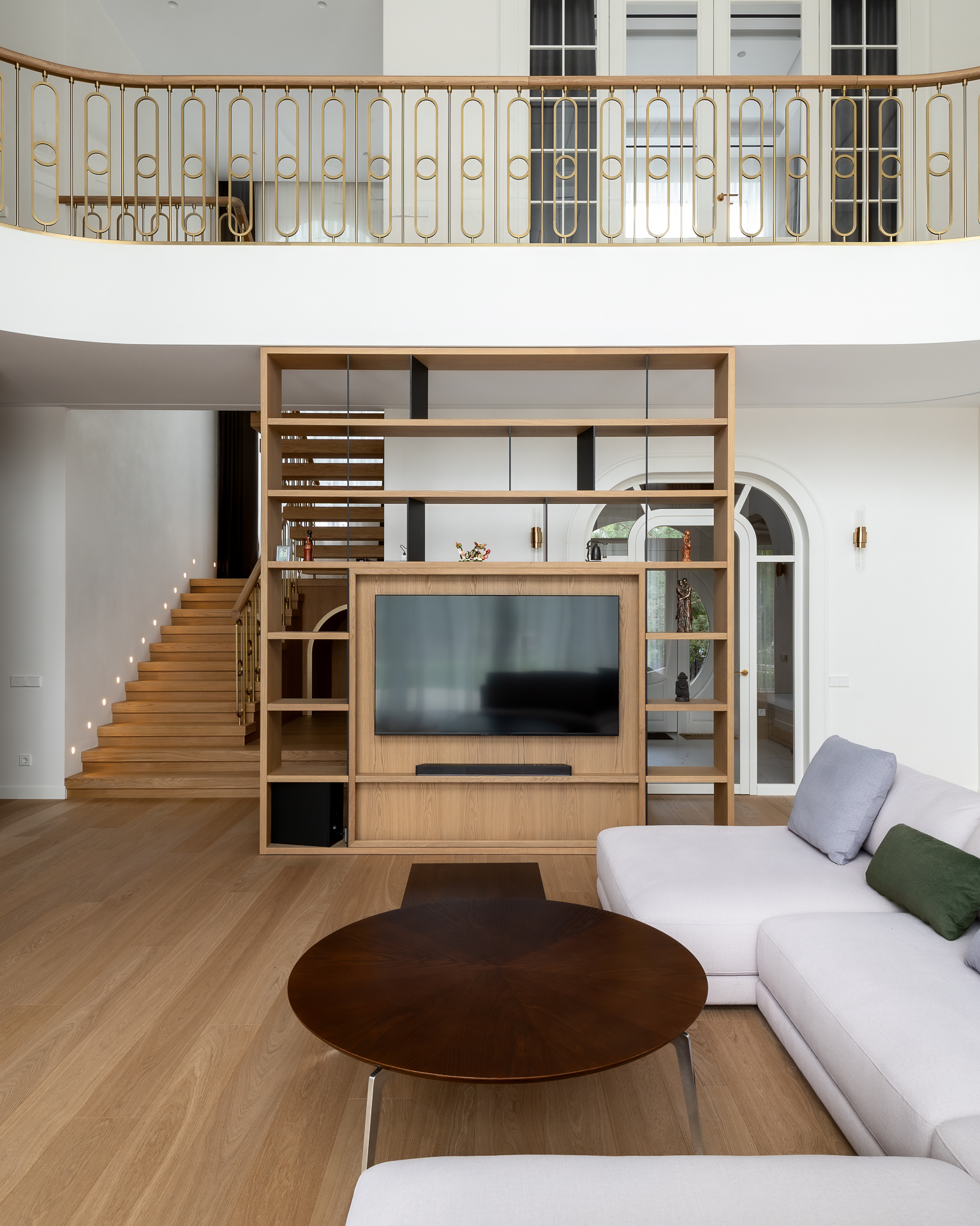 Інтер’єр втілює баланс між сучасною простотою та елегантністю, використовуючи натуральні матеріали та приглушені відтінки для створення гармонійної атмосфери, де кожен елемент створює вишуканість і комфорт.