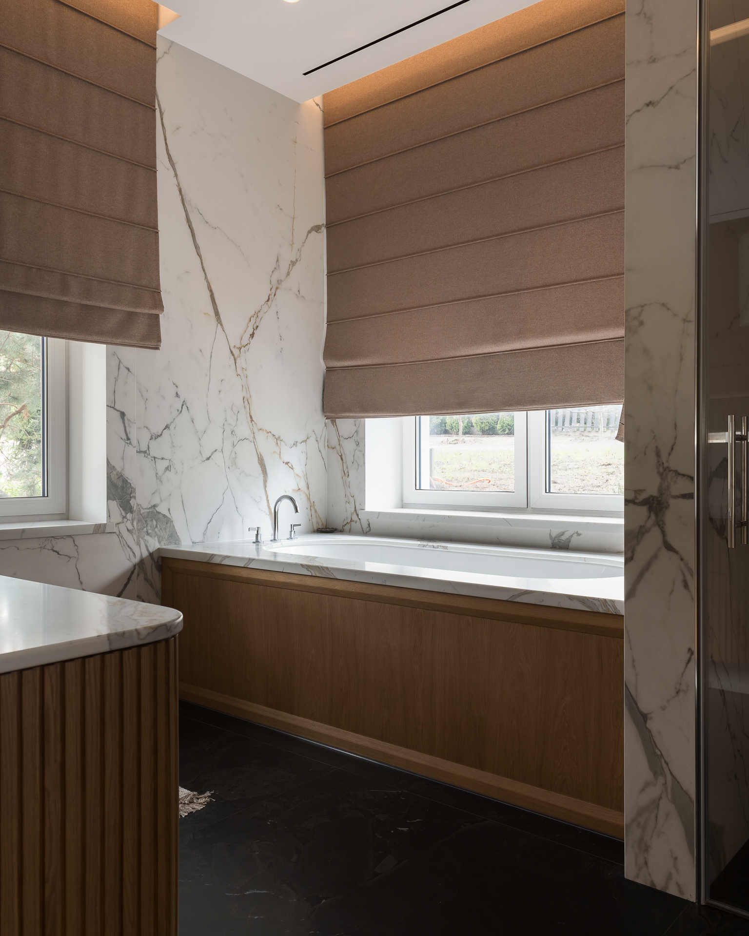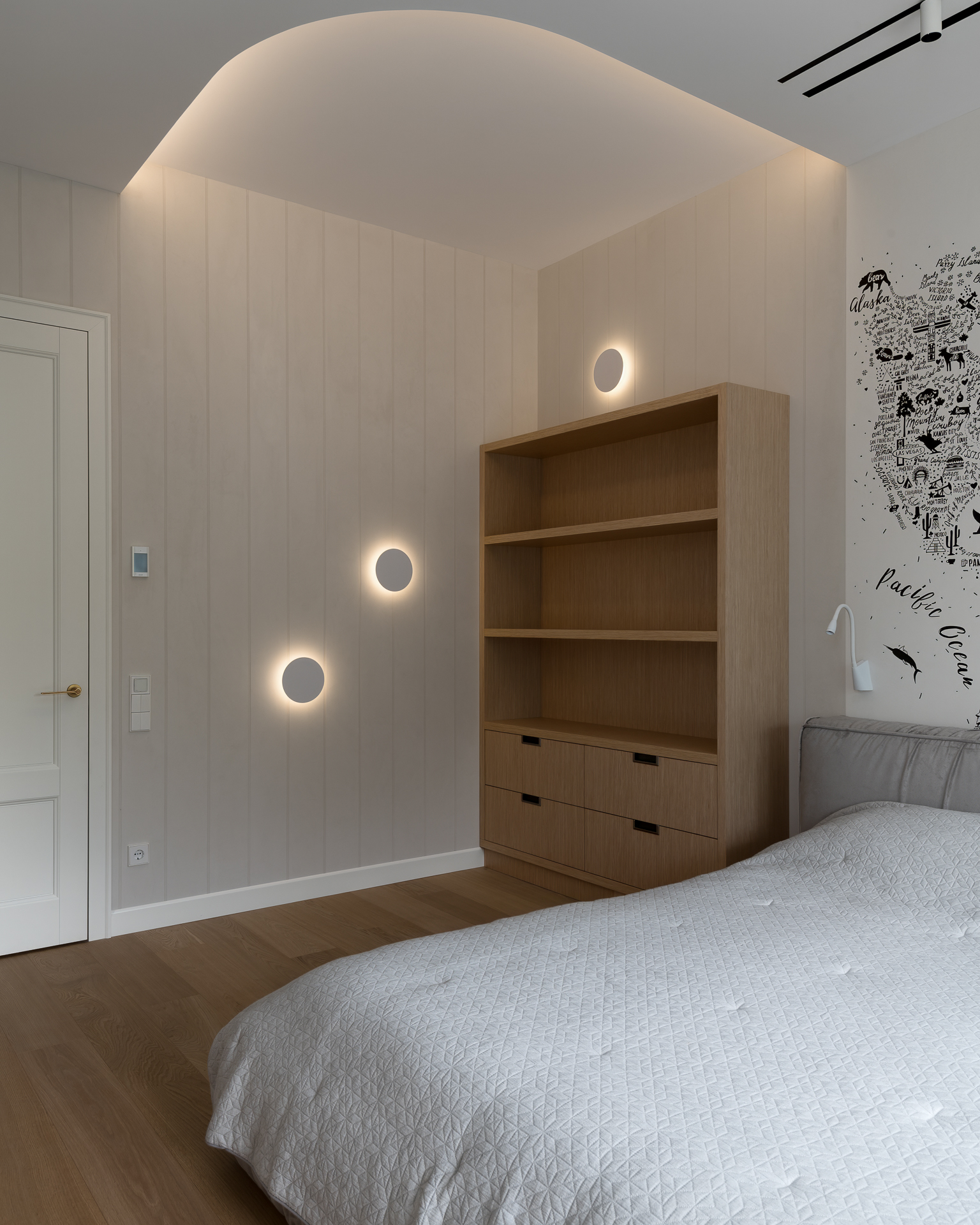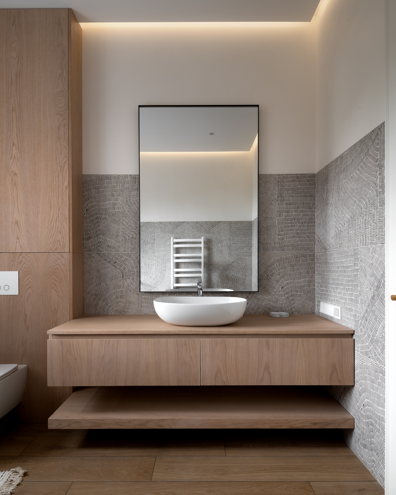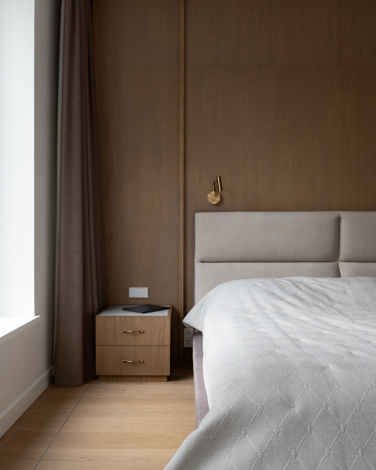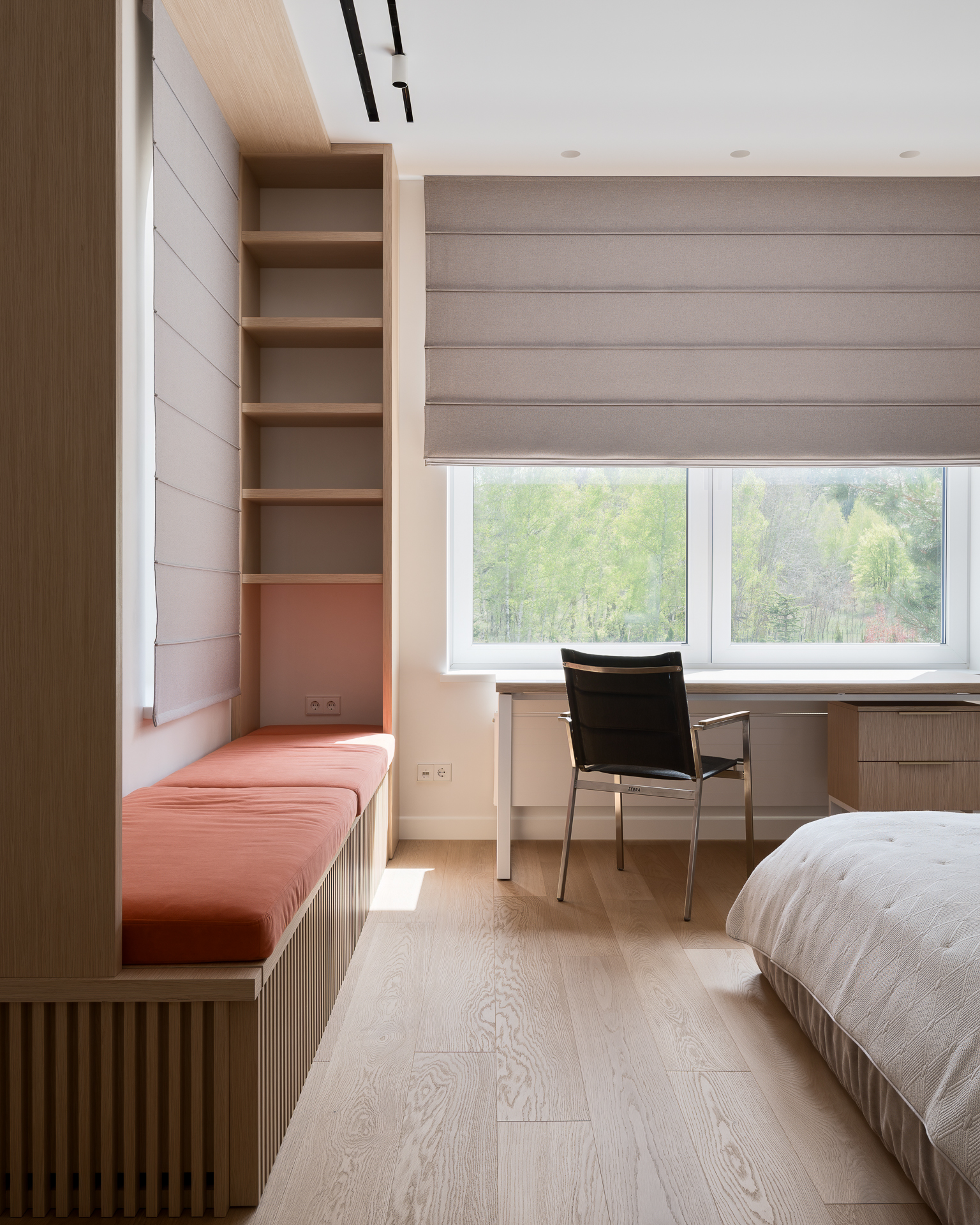 Інтер’єр втілює баланс між сучасною простотою та елегантністю, використовуючи натуральні матеріали та приглушені відтінки для створення гармонійної атмосфери, де кожен елемент створює вишуканість і комфорт.