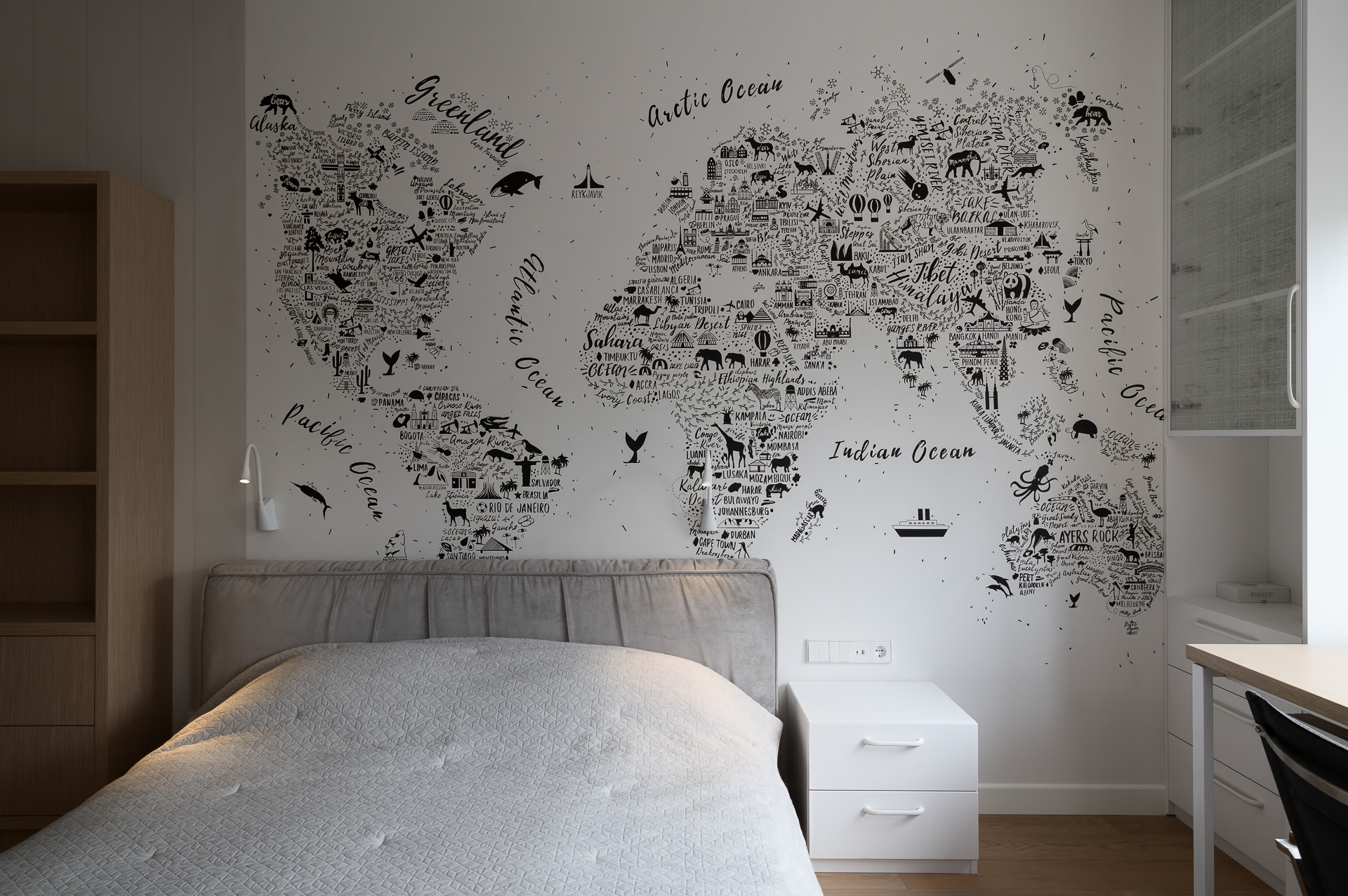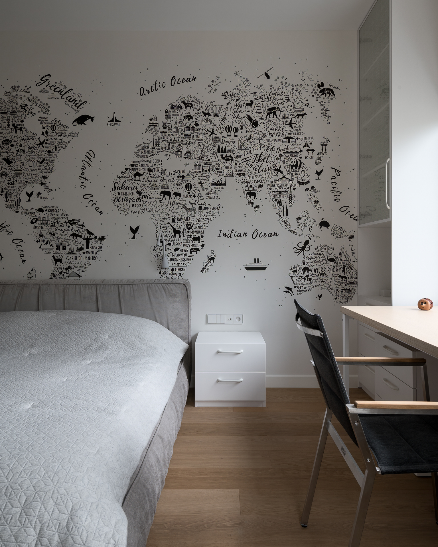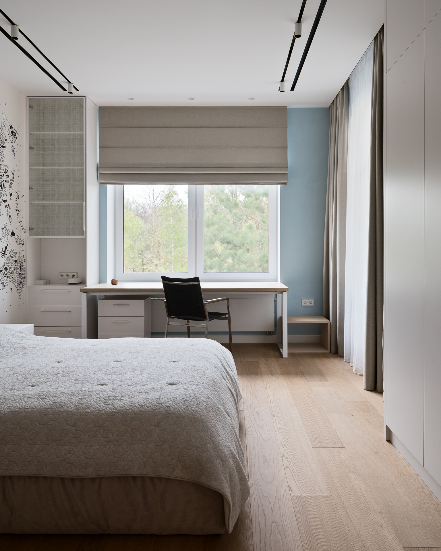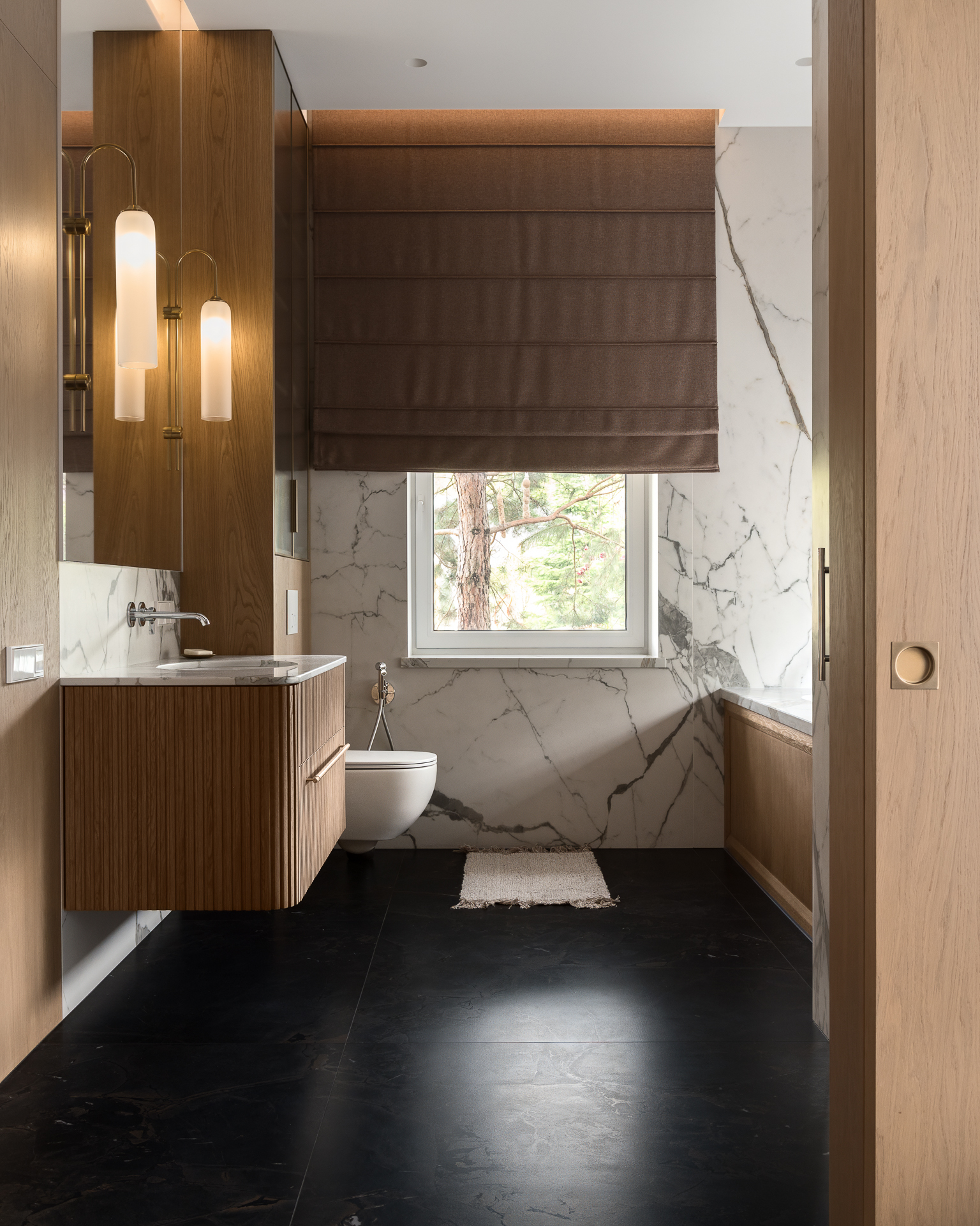 Інтер’єр втілює баланс між сучасною простотою та елегантністю, використовуючи натуральні матеріали та приглушені відтінки для створення гармонійної атмосфери, де кожен елемент створює вишуканість і комфорт.